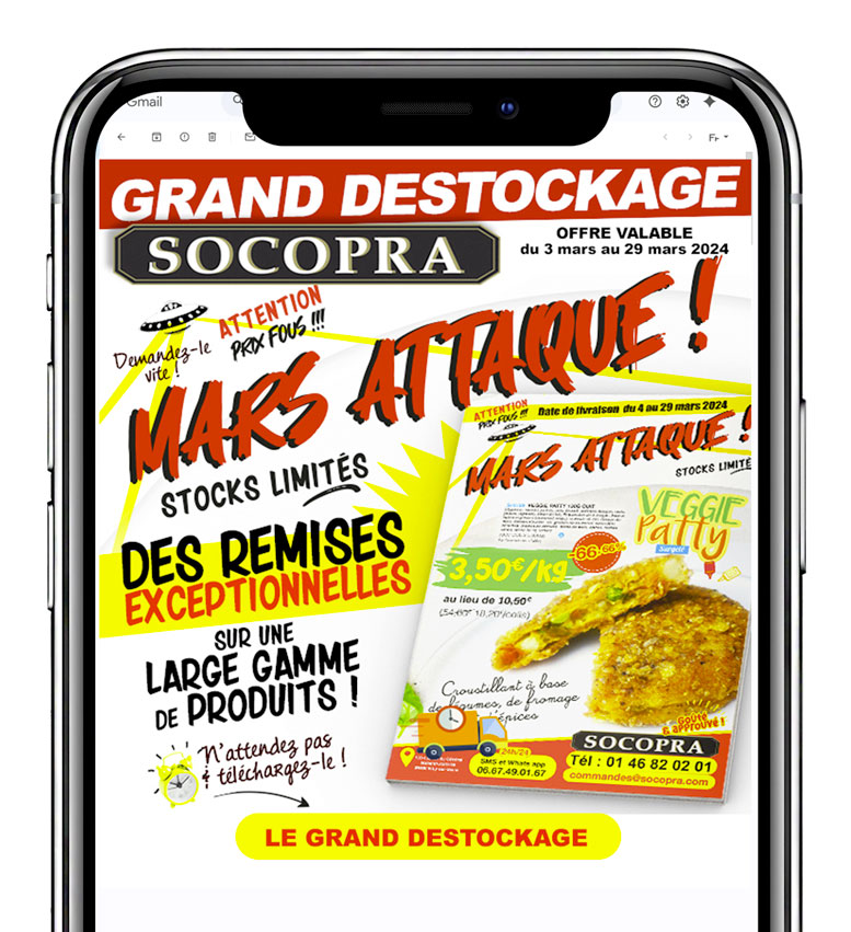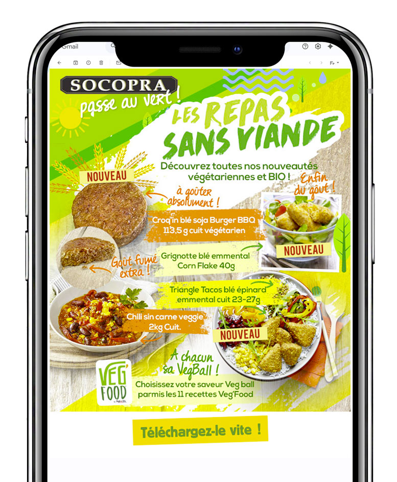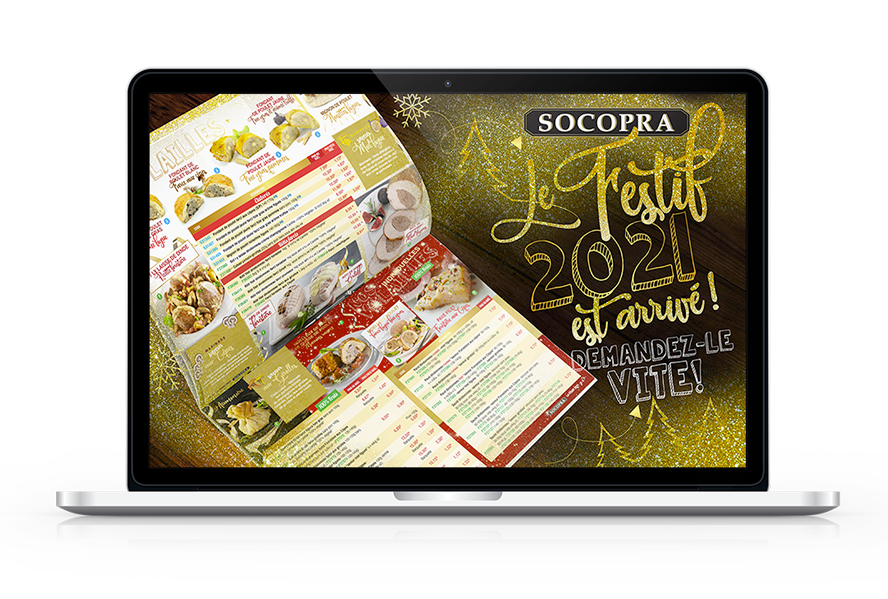 Restauration collective Fournisseur de denrées alimentaires au service de la restauration collective, la Socopra est engagée dans une démarche d’achats responsables. SUPPORTS COMMERCIAUX SUPPORT TECHNIQUE EVENEMENTIEL PICTOGRAMMES Supports promotionnels CAMPAGNE HIVER CAMPAGNE PRINTEMPS LE FESTIF E-Mailing CAMPAGNE REPAS SANS VIANDE CAMPAGNE SPECIAL EGALIM Référentiel de produits labellisés éligible à la loi Egalim. Catalogue général Toutes les gammes de produits commercialisés. Supports techniques Vulgarisation de contenus institutionnels Processus de traçabilité du champ à l’assiette Covering Véhicule Flyer Ecran d'accueil visiteurs La mascotte Cocotte Pictogrammes Pictogramme Spécial circuit court Gamme produits "sans viande" Indice spécial critère Plan Alimentaire Durable Partenaires engagés